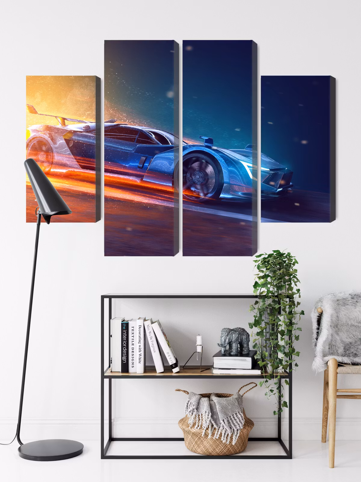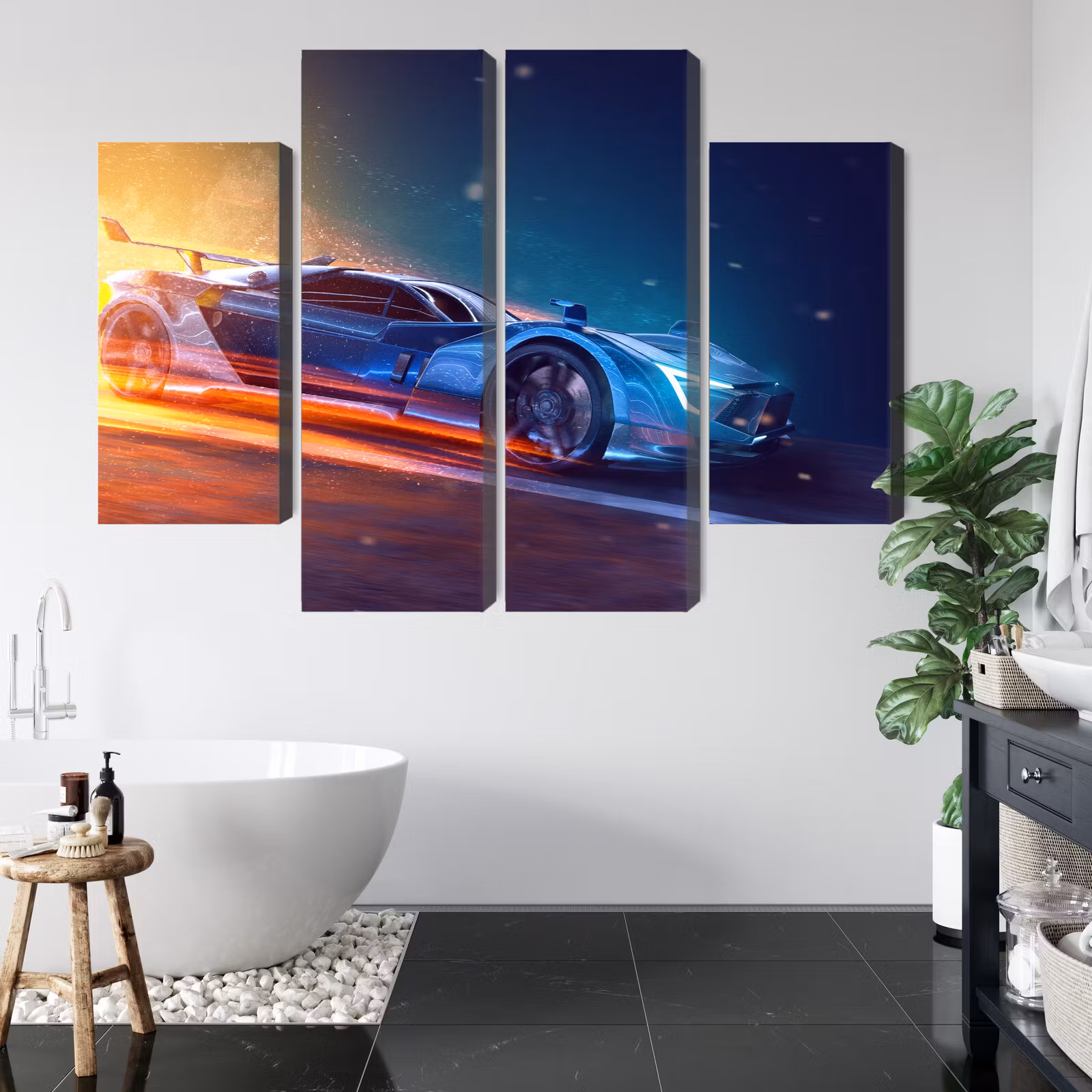 Motivet trycks runt hela ramen för ett stilrent och komplett utseende – ingen ytterram behövs. Tavlan levereras färdig att hängas upp; fäst bara ramen på en eller två skruvar. Kanttrycket gör att 3d futuristic sports car framträder lika vackert från sidan som framifrån, och helhetsintrycket förblir lugnt och balanserat.