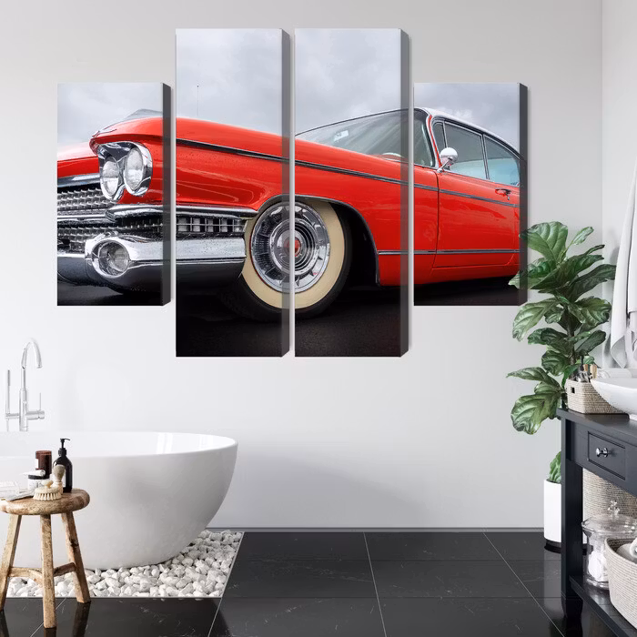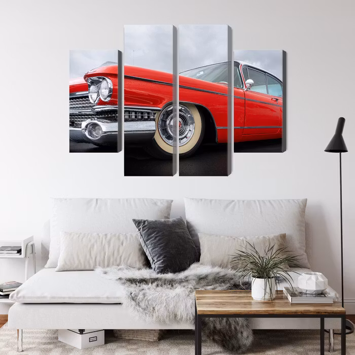 Motivet A red car from the 1950s förenar estetik och teknik i en harmonisk komposition, där färgtonerna är noggrant balanserade för att framhäva djup, kontrast och rytm utan att kännas skarpa. Canvasen är monterad på en stabil fururam för ett professionellt uttryck som håller över tid. Resultatet är en canvastavla som förmedlar lugn och riktning – oavsett om den hänger i vardagsrum, sovrum eller kontor. Ljuset i motivet skapar mjuka övergångar och ger en känsla av stillhet i rummet.