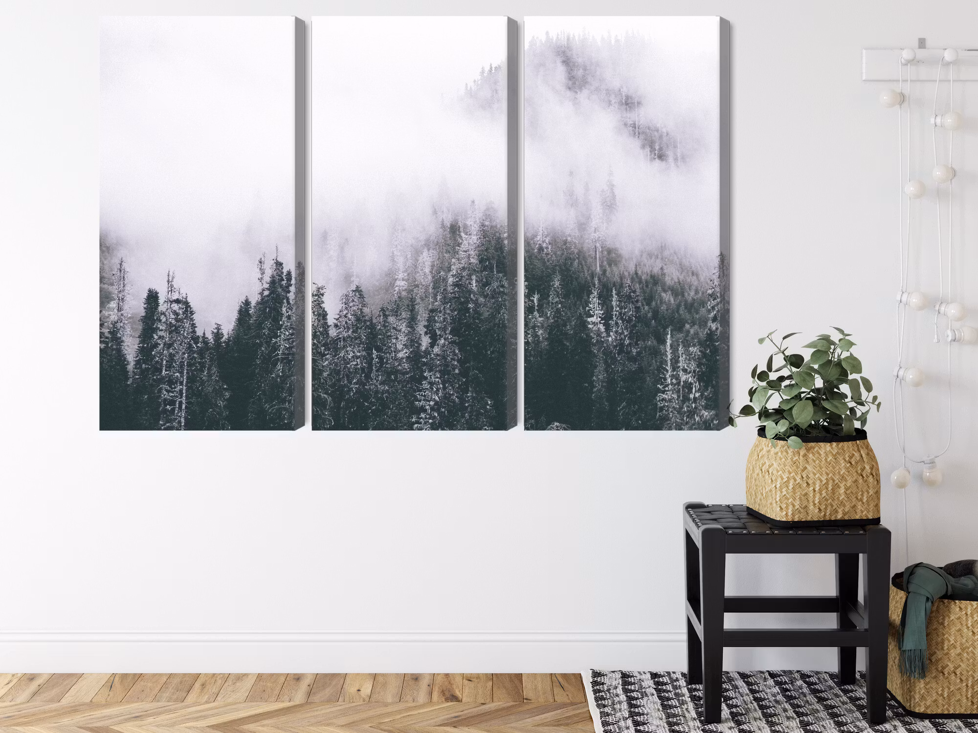 Motivet trycks runt hela ramen för ett stilrent och komplett utseende – ingen ytterram behövs. Tavlan levereras färdig att hängas upp; fäst bara ramen på en eller två skruvar. Kanttrycket gör att A forest shrouded in fog framträder lika vackert från sidan som framifrån, och helhetsintrycket förblir lugnt och balanserat.