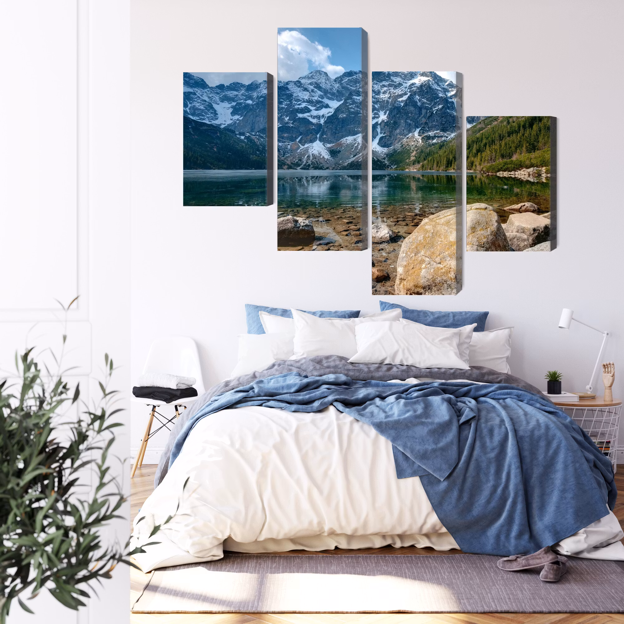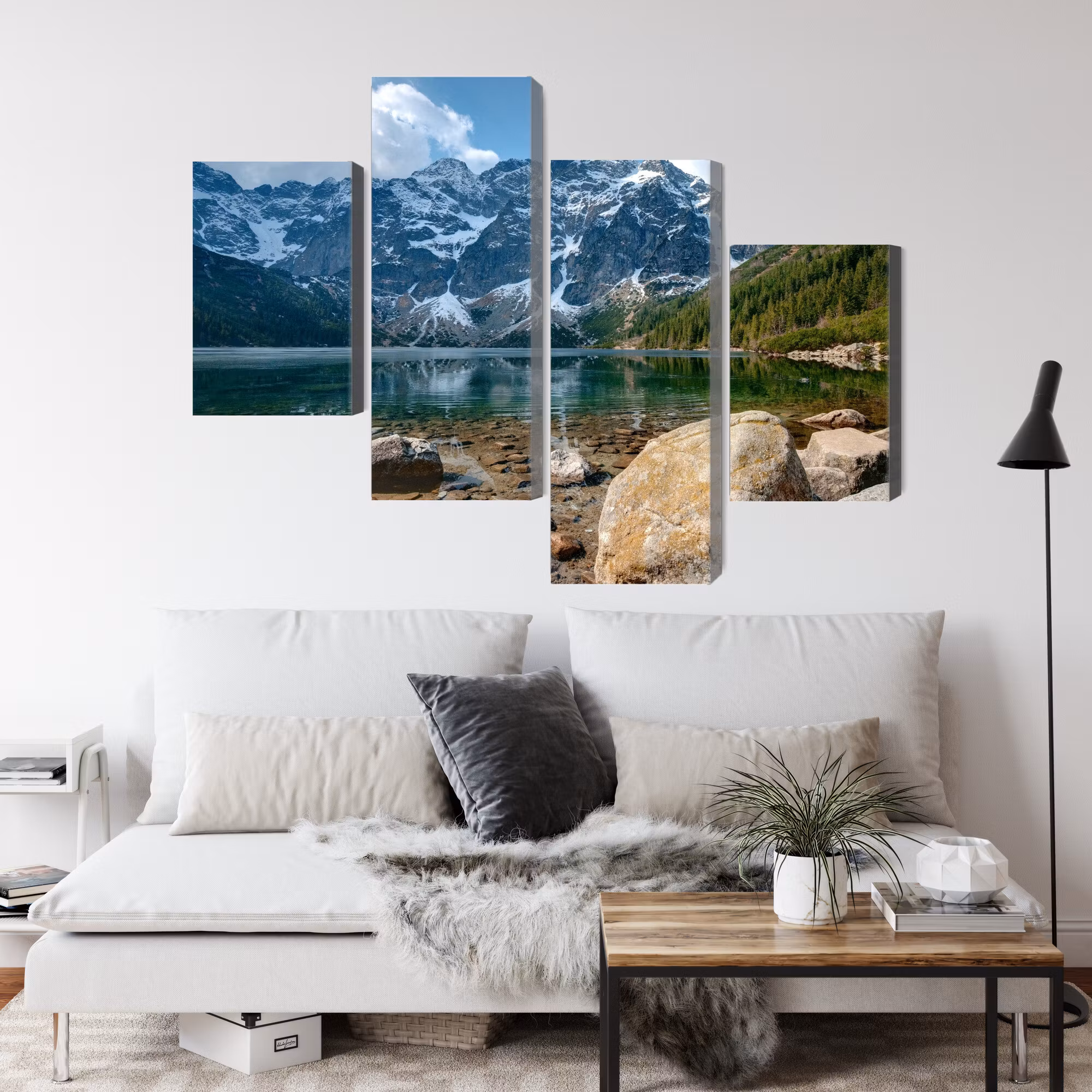 Motivet trycks runt hela ramen för ett stilrent och komplett utseende – ingen ytterram behövs. Tavlan levereras färdig att hängas upp; fäst bara ramen på en eller två skruvar. Kanttrycket gör att Morskie oko in the tatras 3d framträder lika vackert från sidan som framifrån, och helhetsintrycket förblir lugnt och balanserat.