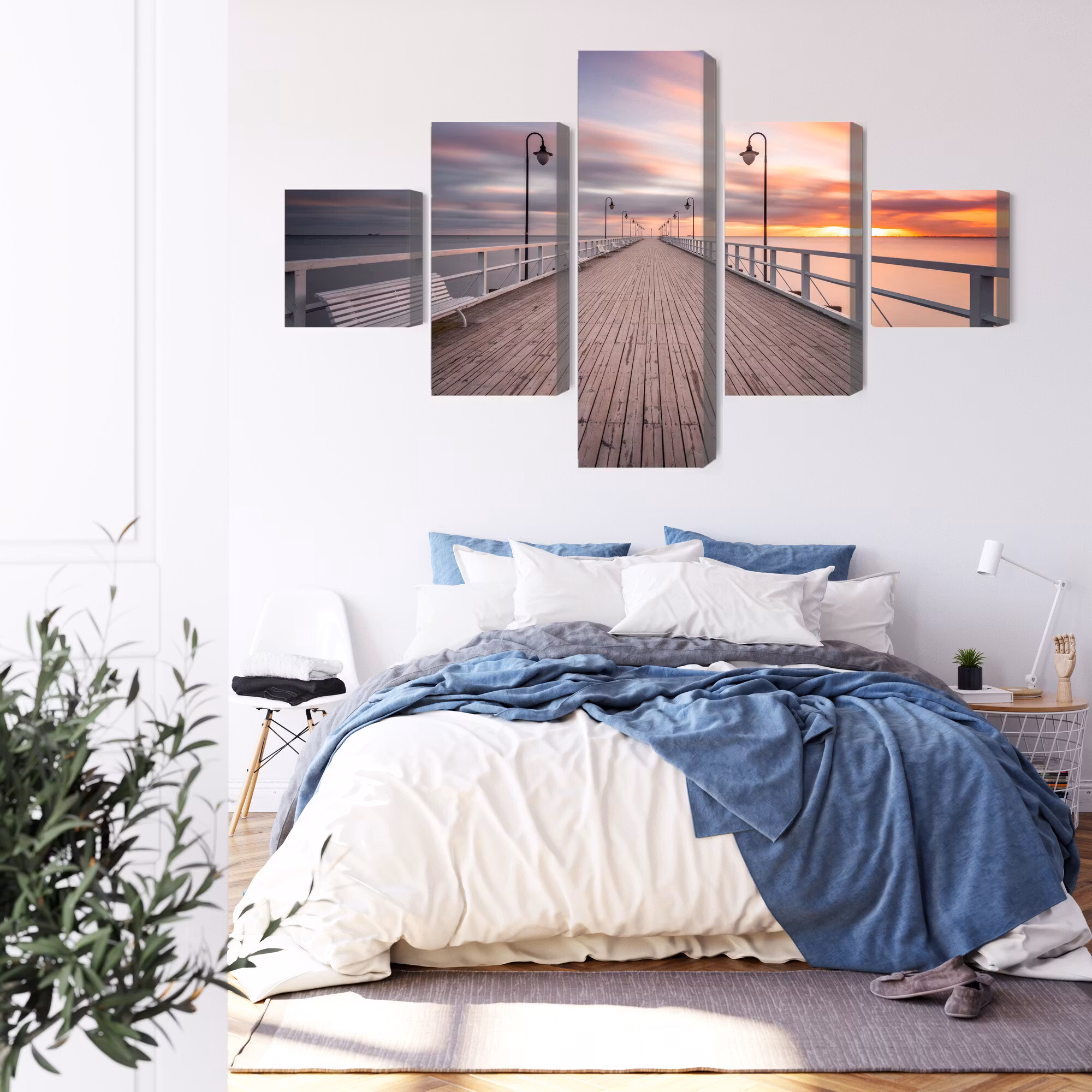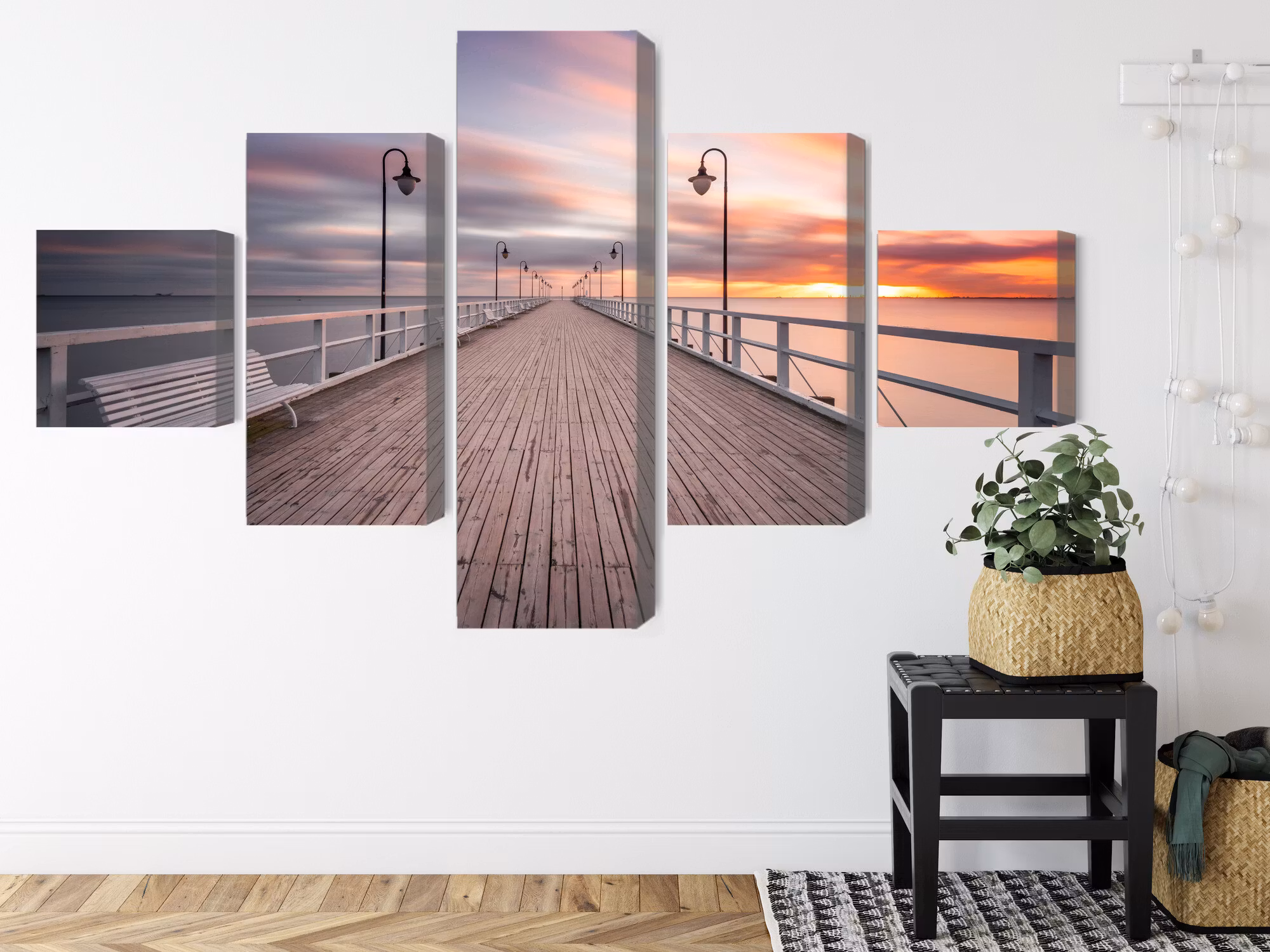 Motivet trycks runt hela ramen för ett stilrent och komplett utseende – ingen ytterram behövs. Tavlan levereras färdig att hängas upp; fäst bara ramen på en eller två skruvar. Kanttrycket gör att The pier in gdynia orlowo framträder lika vackert från sidan som framifrån, och helhetsintrycket förblir lugnt och balanserat.