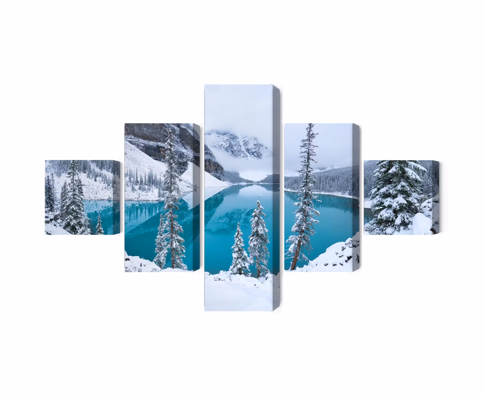 Canvastavlan Moraine Lake in winter finns i två varianter beroende på vilken känsla du vill skapa.