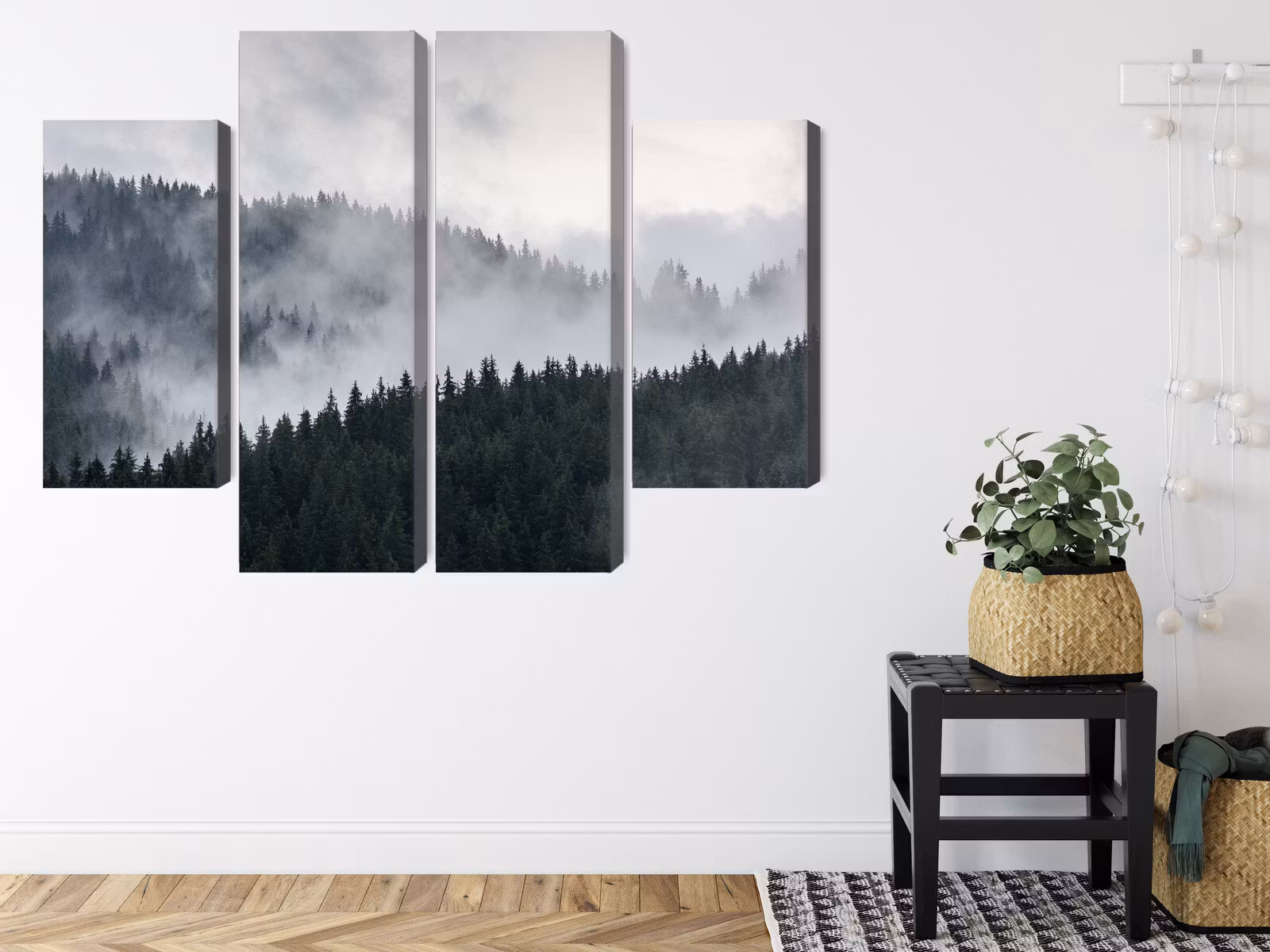 Motivet trycks runt hela ramen för ett stilrent och komplett utseende – ingen ytterram behövs. Tavlan levereras färdig att hängas upp; fäst bara ramen på en eller två skruvar. Kanttrycket gör att Misty 3d forest landscape framträder lika vackert från sidan som framifrån, och helhetsintrycket förblir lugnt och balanserat.