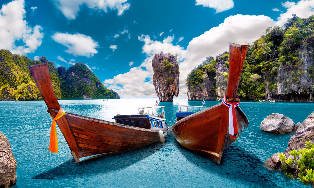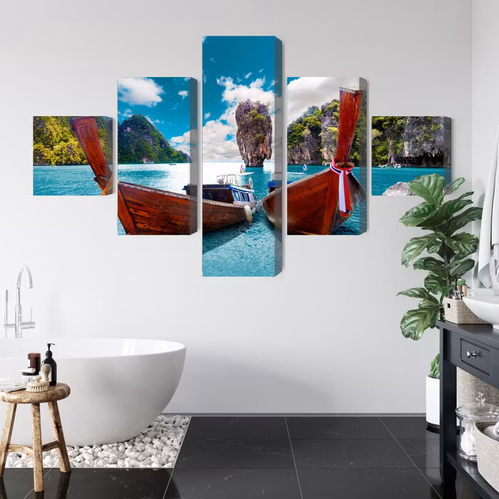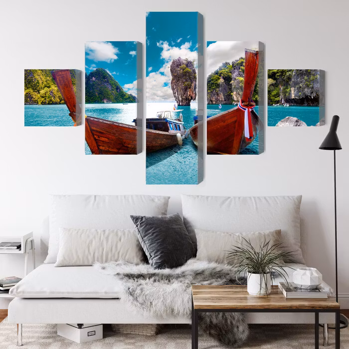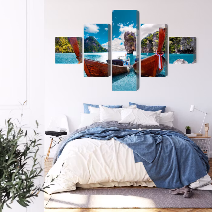 Lugna nyanser i Boats at the andaman sea in thailand skapar en vilopunkt där blicken kan stanna utan att rummet känns tungt.
