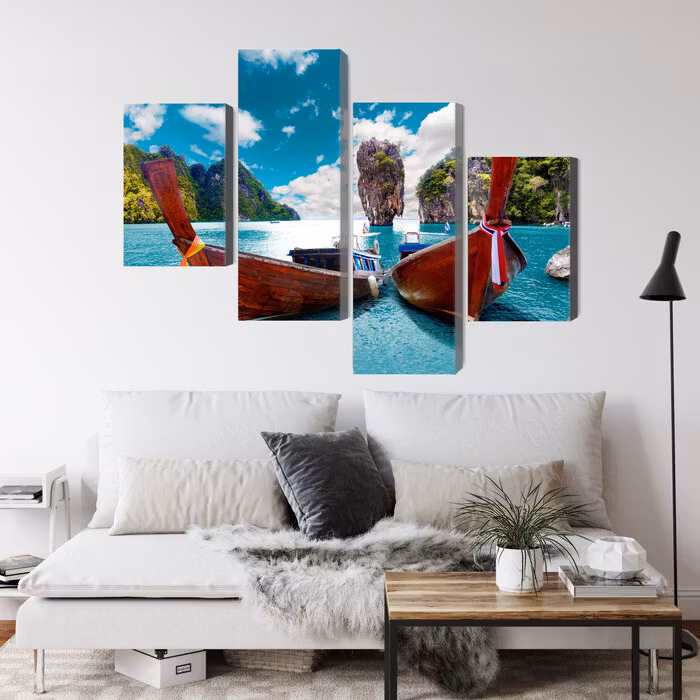 Motivet Boats at the andaman sea in thailand förenar estetik och teknik i en harmonisk komposition, där färgtonerna är noggrant balanserade för att framhäva djup, kontrast och rytm utan att kännas skarpa. Canvasen är monterad på en stabil fururam för ett professionellt uttryck som håller över tid. Resultatet är en canvastavla som förmedlar lugn och riktning – oavsett om den hänger i vardagsrum, sovrum eller kontor. Ljuset i motivet skapar mjuka övergångar och ger en känsla av stillhet i rummet.