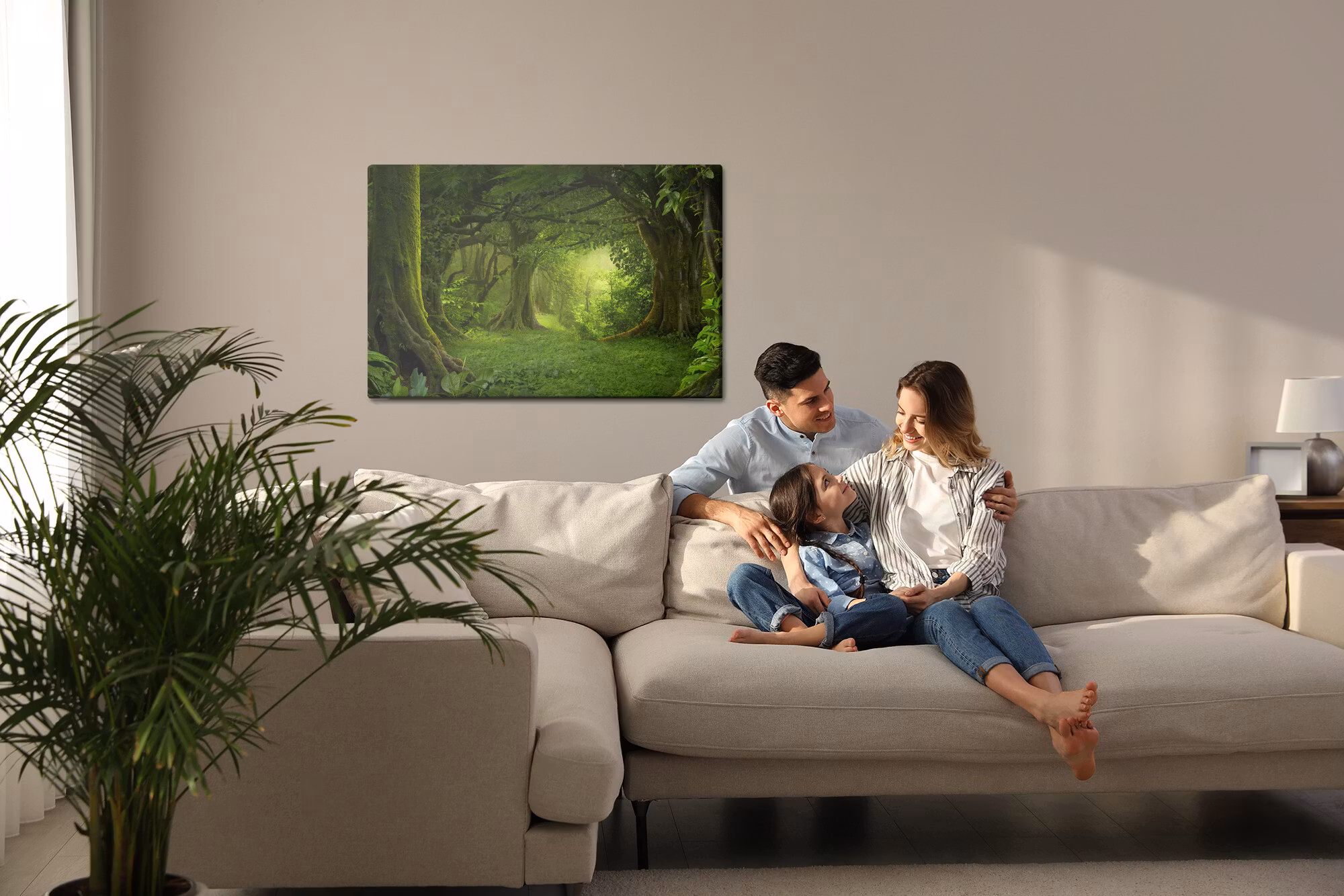 Motivet The depth of the tropical forest förenar estetik och teknik i en harmonisk komposition, där färgtonerna är noggrant balanserade för att framhäva djup, kontrast och rytm utan att kännas skarpa. Canvasen är monterad på en stabil fururam för ett professionellt uttryck som håller över tid. Resultatet är en canvastavla som förmedlar lugn och riktning – oavsett om den hänger i vardagsrum, sovrum eller kontor. Ljuset i motivet skapar mjuka övergångar och ger en känsla av stillhet i rummet.