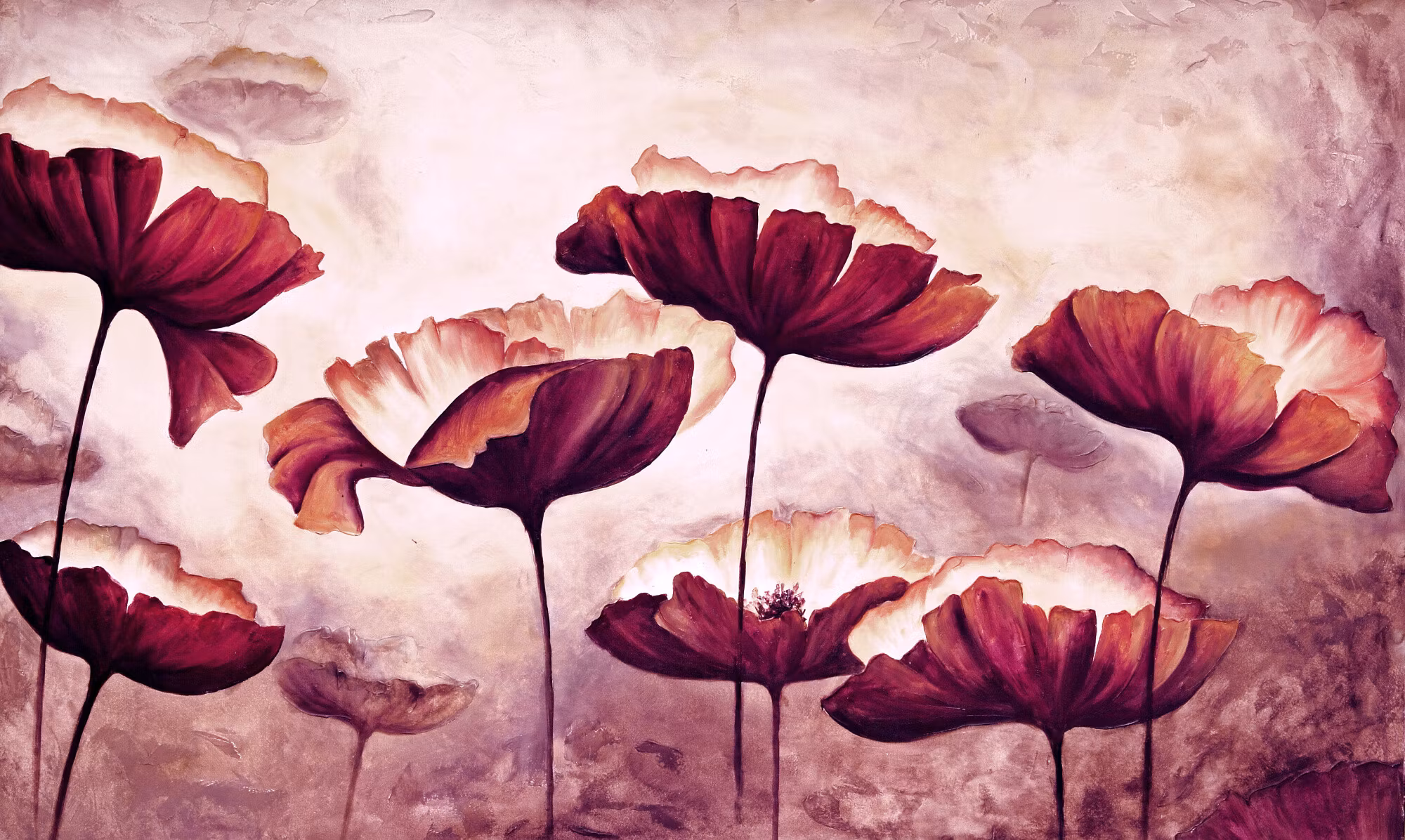 Canvastavla - Poppies as painted - konstverk med mjuka färgövergångar
