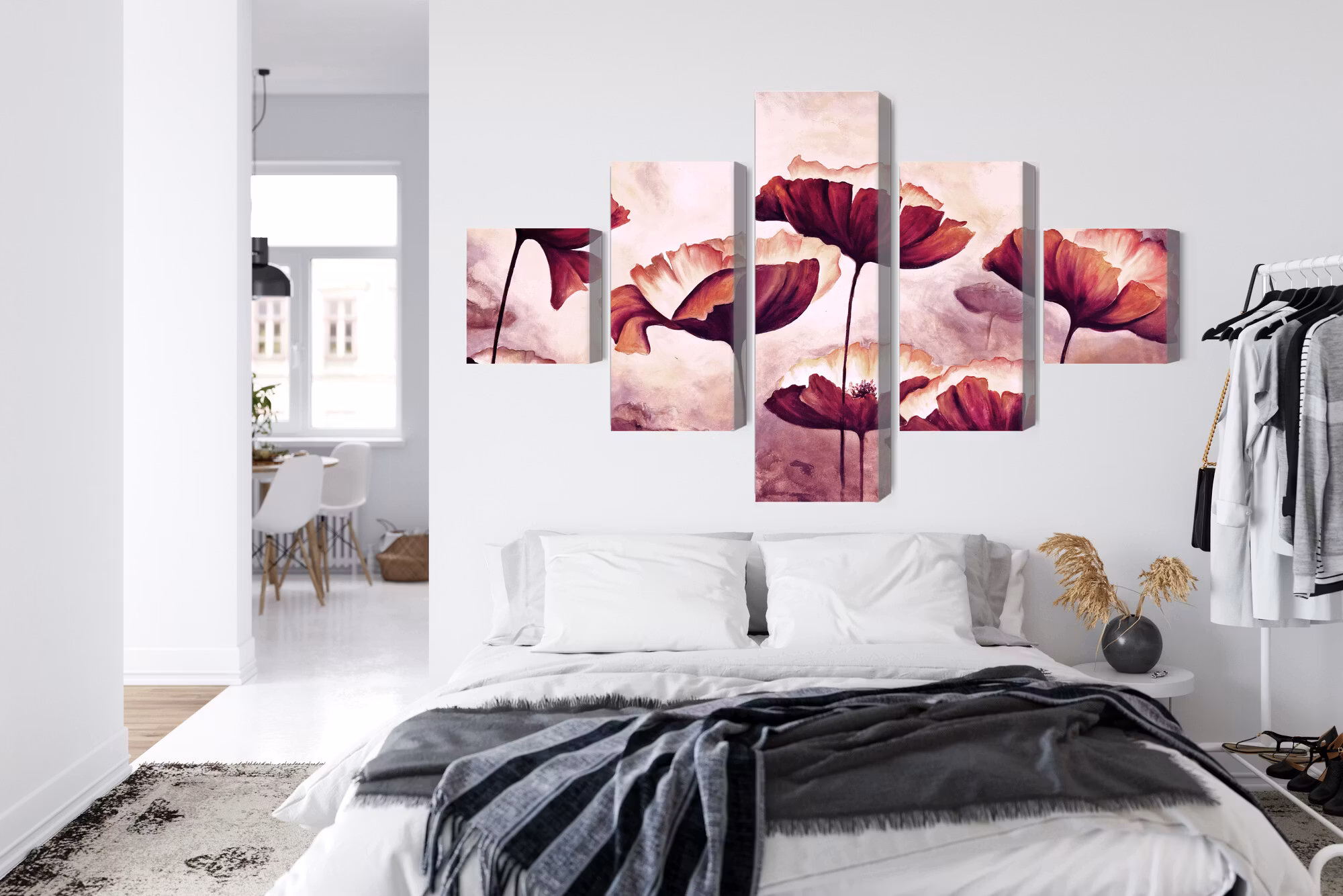 Motivet trycks runt hela ramen för ett stilrent och komplett utseende – ingen ytterram behövs. Tavlan levereras färdig att hängas upp; fäst bara ramen på en eller två skruvar. Kanttrycket gör att Poppies as painted framträder lika vackert från sidan som framifrån, och helhetsintrycket förblir lugnt och balanserat.
