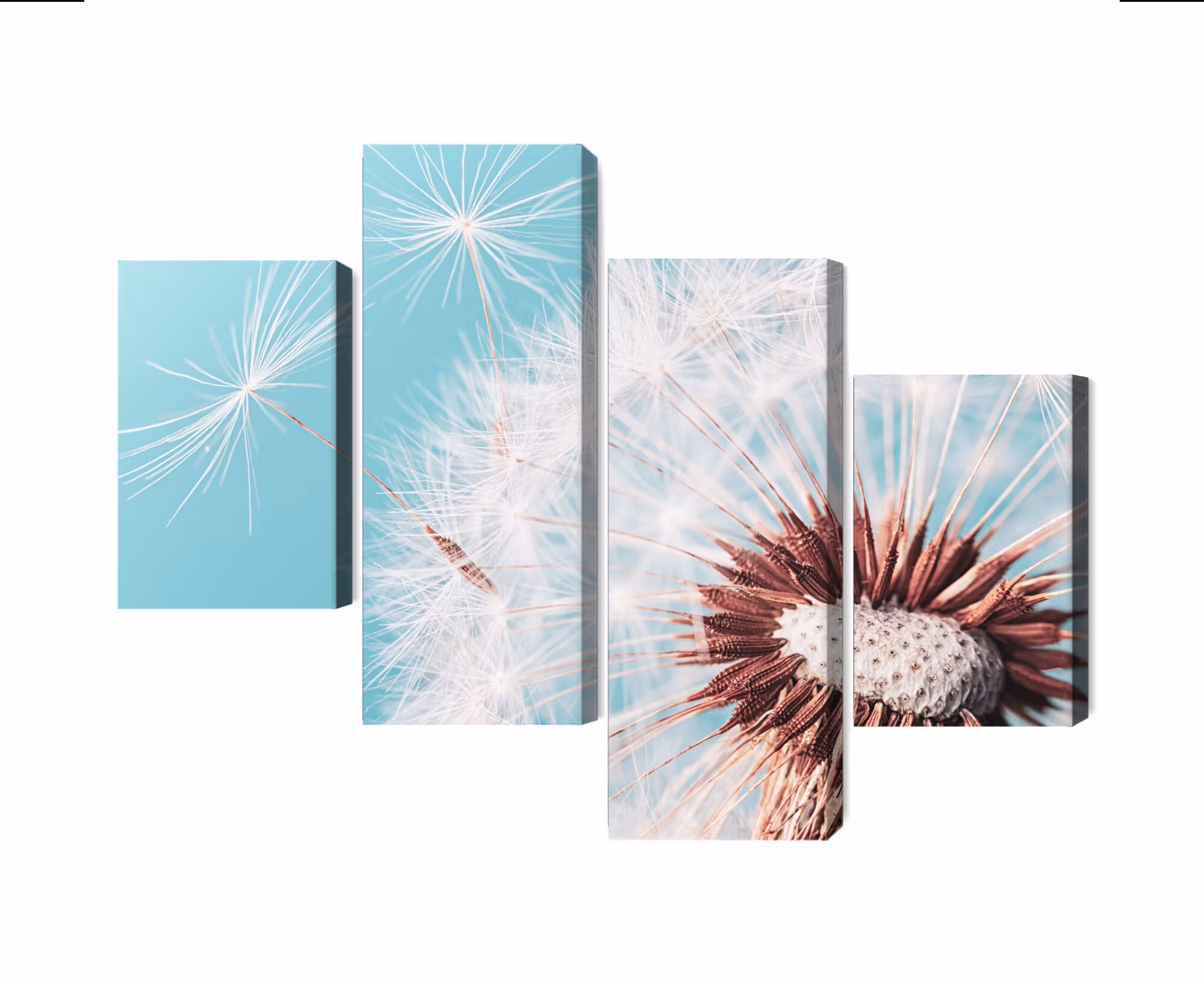Motivet trycks runt hela ramen för ett stilrent och komplett utseende – ingen ytterram behövs. Tavlan levereras färdig att hängas upp; fäst bara ramen på en eller två skruvar. Kanttrycket gör att Dandelion flower on a macro scale framträder lika vackert från sidan som framifrån, och helhetsintrycket förblir lugnt och balanserat.