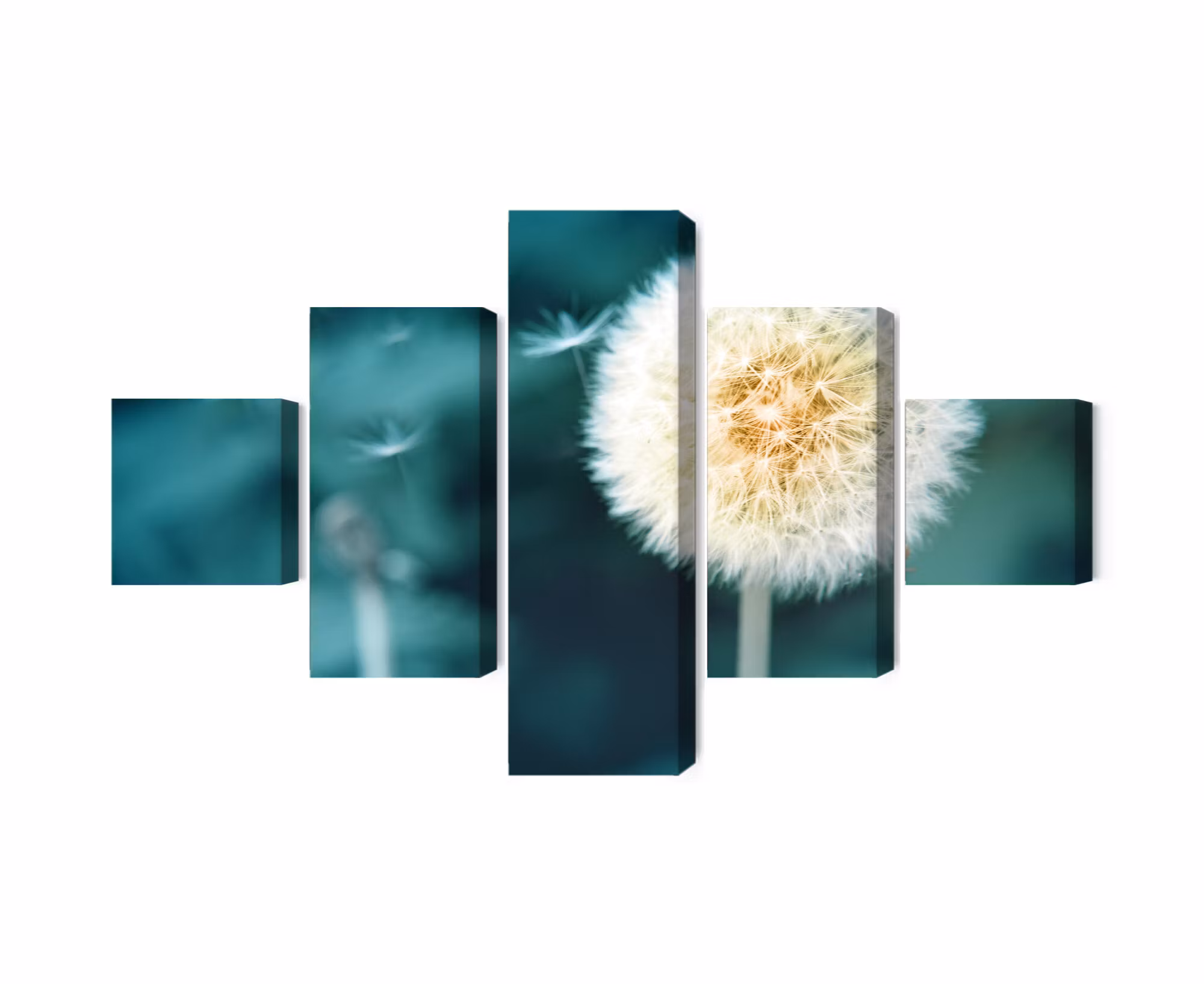 Canvastavlan Dandelion flower close up 3d finns i två varianter beroende på vilken känsla du vill skapa.