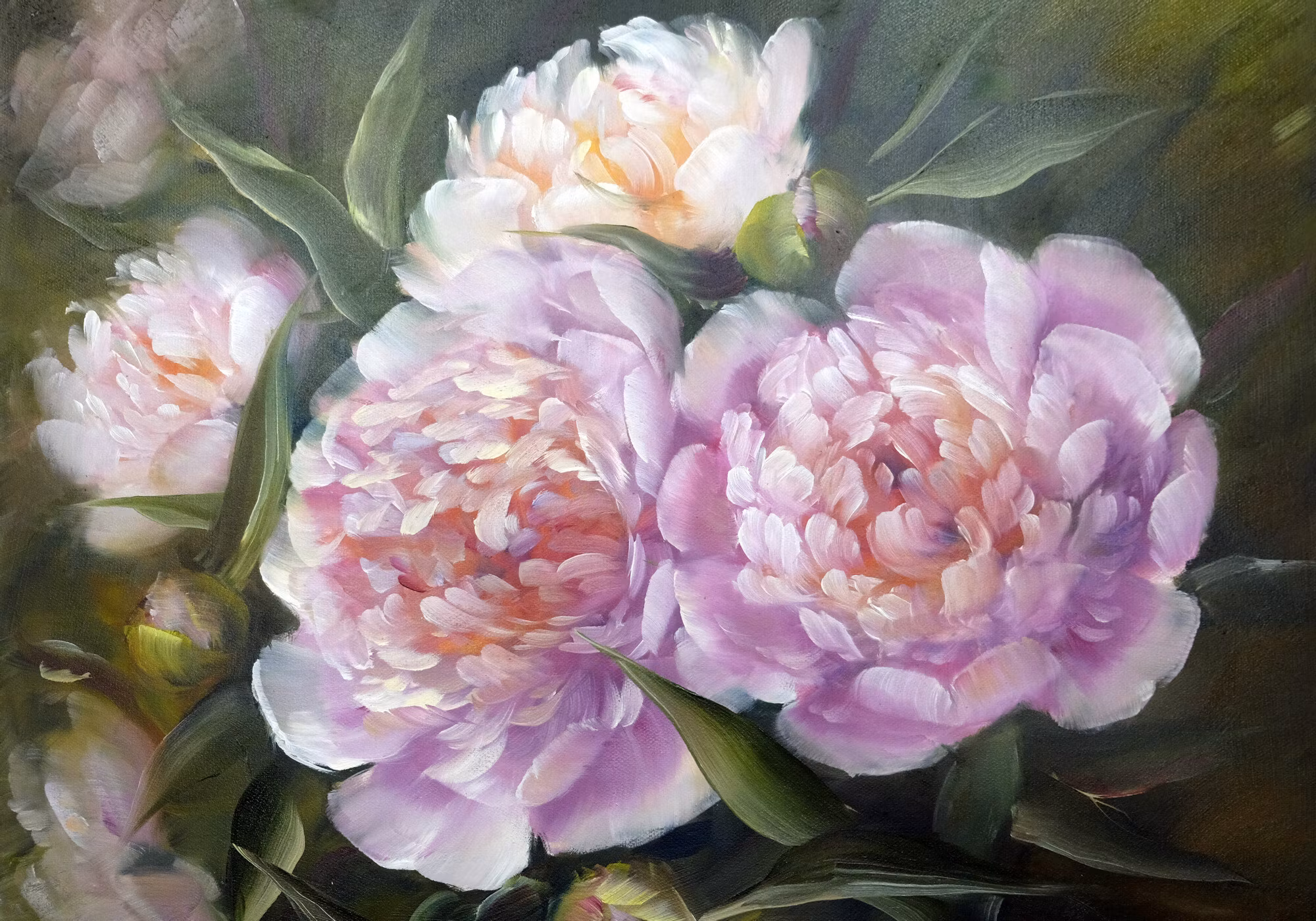 Canvastavla - Peonies roses and leaves as painted - inspirerande väggkonst i fin balans