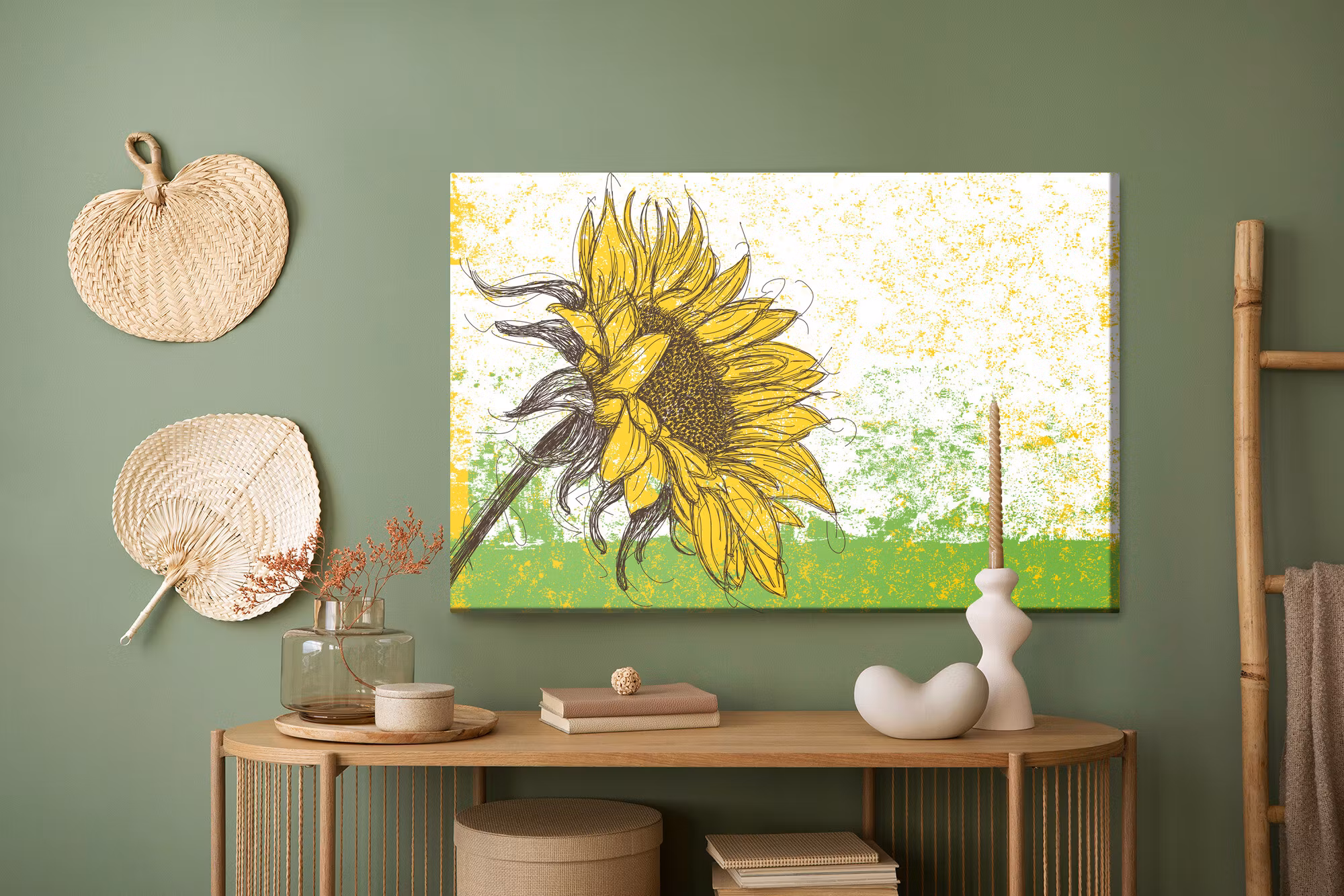 Motivet Sunflower as sketched förenar estetik och teknik i en harmonisk komposition, där färgtonerna är noggrant balanserade för att framhäva djup, kontrast och rytm utan att kännas skarpa. Canvasen är monterad på en stabil fururam för ett professionellt uttryck som håller över tid. Resultatet är en canvastavla som förmedlar lugn och riktning – oavsett om den hänger i vardagsrum, sovrum eller kontor. Ljuset i motivet skapar mjuka övergångar och ger en känsla av stillhet i rummet.