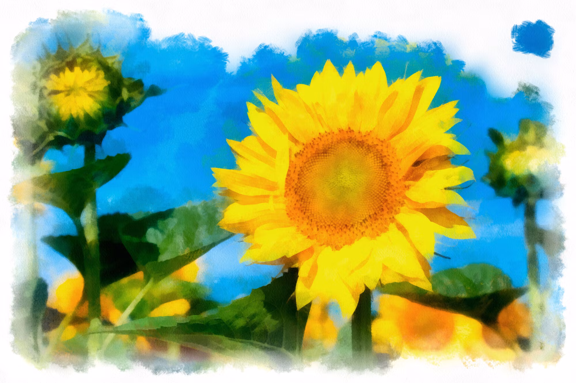 Canvastavla - Sunflowers as if painted with watercolor