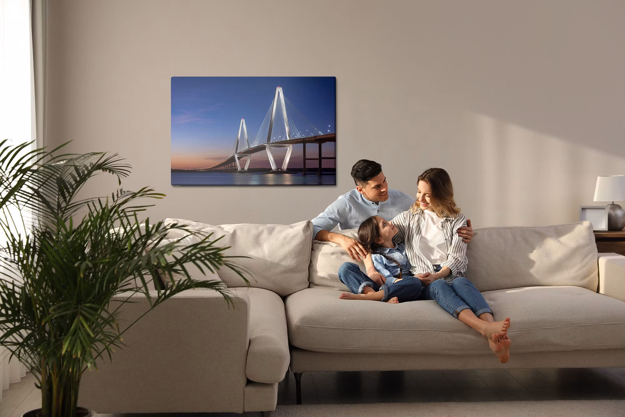 Motivet Arthur ravenel jr. bridge bridge, Usa förenar estetik och teknik i en harmonisk komposition, där färgtonerna är noggrant balanserade för att framhäva djup, kontrast och rytm utan att kännas skarpa. Canvasen är monterad på en stabil fururam för ett professionellt uttryck som håller över tid. Resultatet är en canvastavla som förmedlar lugn och riktning – oavsett om den hänger i vardagsrum, sovrum eller kontor. Ljuset i motivet skapar mjuka övergångar och ger en känsla av stillhet i rummet.