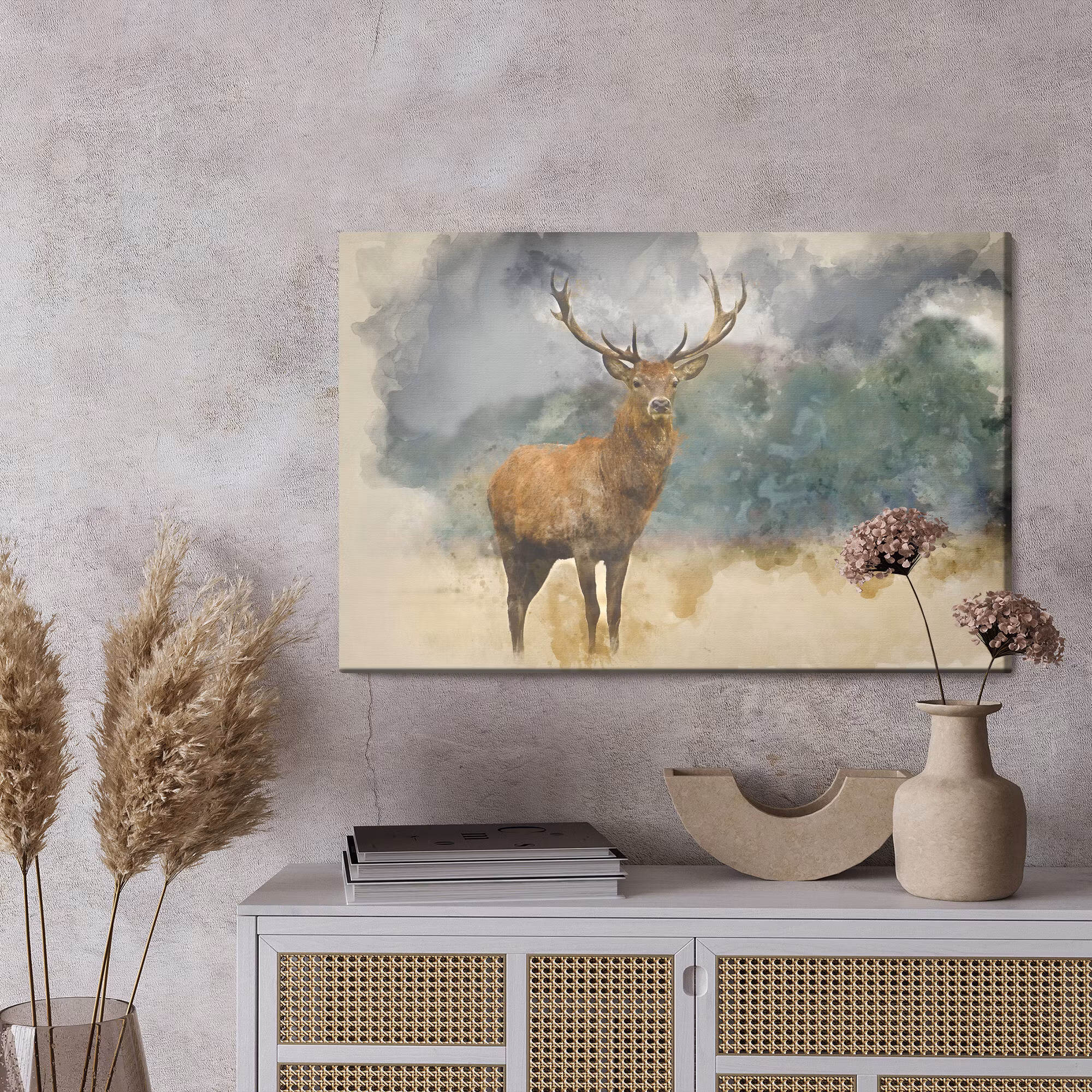 Canvastavla - A deer painted with watercolor - motiv som skapar rymd och känsla