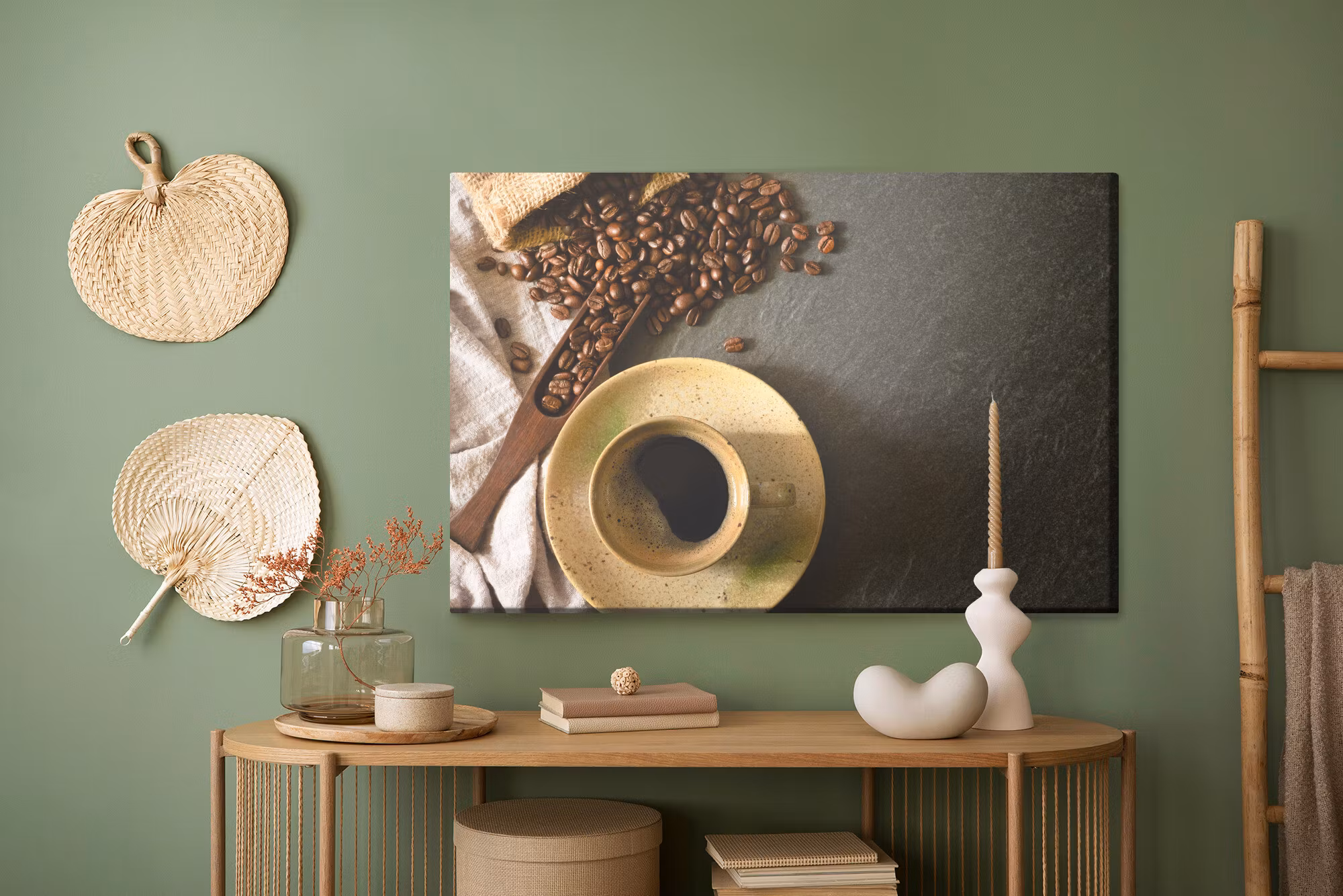 Motivet Coffee with milk foam förenar estetik och teknik i en harmonisk komposition, där färgtonerna är noggrant balanserade för att framhäva djup, kontrast och rytm utan att kännas skarpa. Canvasen är monterad på en stabil fururam för ett professionellt uttryck som håller över tid. Resultatet är en canvastavla som förmedlar lugn och riktning – oavsett om den hänger i vardagsrum, sovrum eller kontor. Ljuset i motivet skapar mjuka övergångar och ger en känsla av stillhet i rummet.