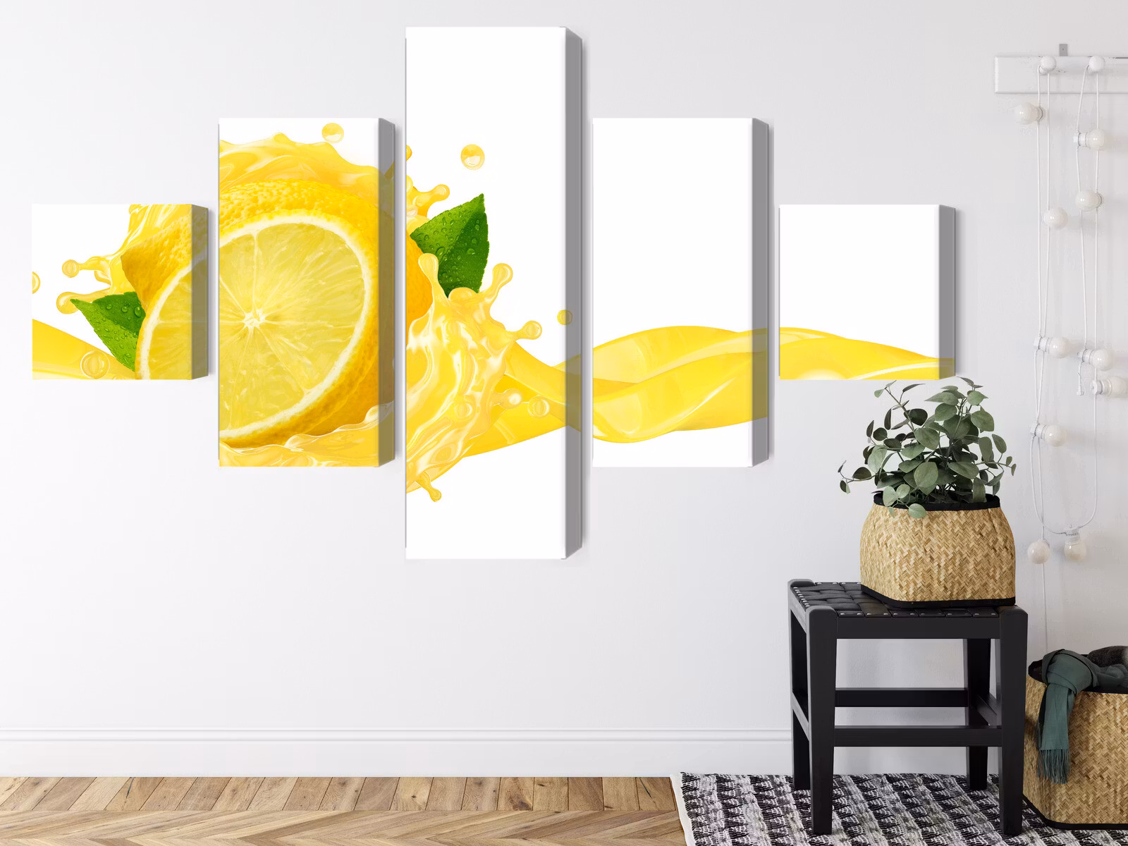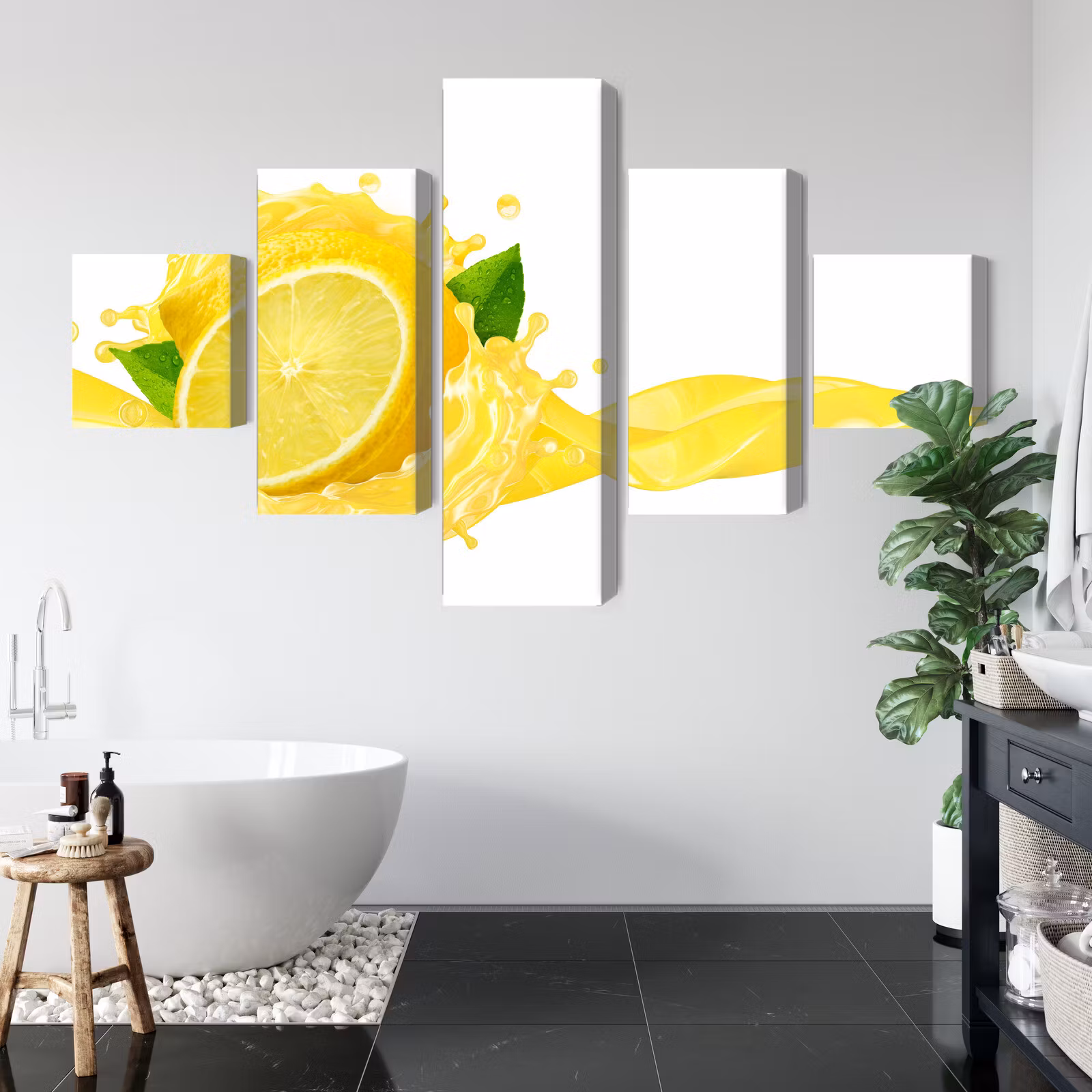 Motivet trycks runt hela ramen för ett stilrent och komplett utseende – ingen ytterram behövs. Tavlan levereras färdig att hängas upp; fäst bara ramen på en eller två skruvar. Kanttrycket gör att Fresh lemon juice framträder lika vackert från sidan som framifrån, och helhetsintrycket förblir lugnt och balanserat.