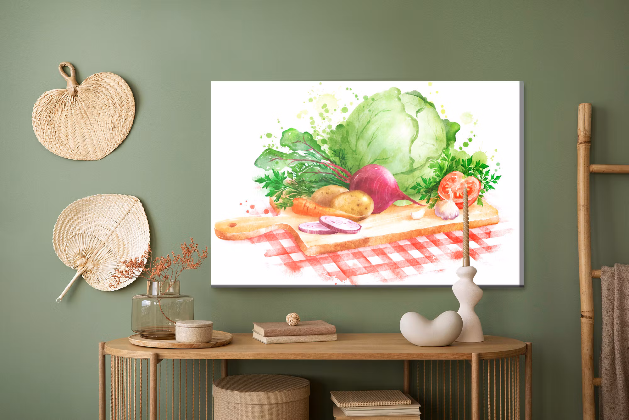 Motivet Vegetables on a chopping board förenar estetik och teknik i en harmonisk komposition, där färgtonerna är noggrant balanserade för att framhäva djup, kontrast och rytm utan att kännas skarpa. Canvasen är monterad på en stabil fururam för ett professionellt uttryck som håller över tid. Resultatet är en canvastavla som förmedlar lugn och riktning – oavsett om den hänger i vardagsrum, sovrum eller kontor. Ljuset i motivet skapar mjuka övergångar och ger en känsla av stillhet i rummet.