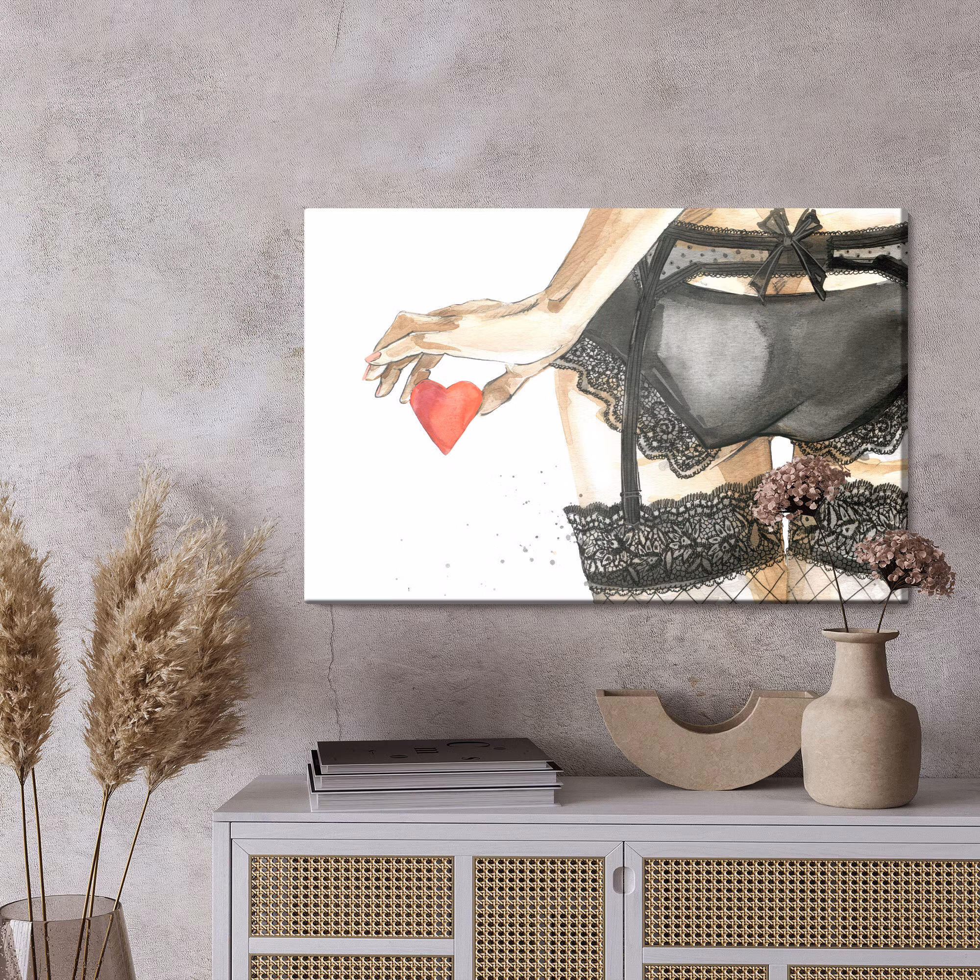 Canvastavlan Woman in underwear painted with finns i två varianter beroende på vilken känsla du vill skapa.