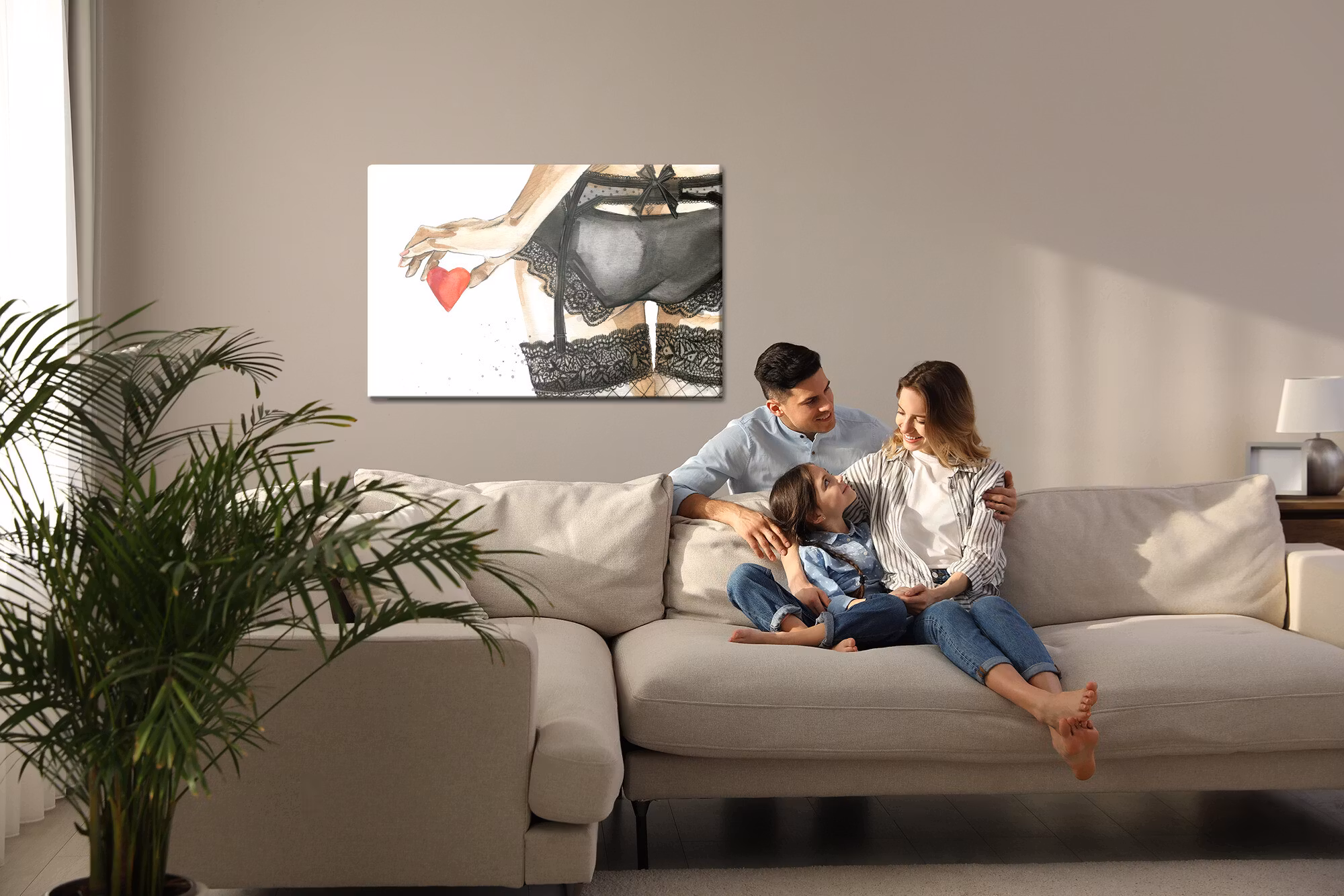 Motivet Woman in underwear painted with förenar estetik och teknik i en harmonisk komposition, där färgtonerna är noggrant balanserade för att framhäva djup, kontrast och rytm utan att kännas skarpa. Canvasen är monterad på en stabil fururam för ett professionellt uttryck som håller över tid. Resultatet är en canvastavla som förmedlar lugn och riktning – oavsett om den hänger i vardagsrum, sovrum eller kontor. Ljuset i motivet skapar mjuka övergångar och ger en känsla av stillhet i rummet.