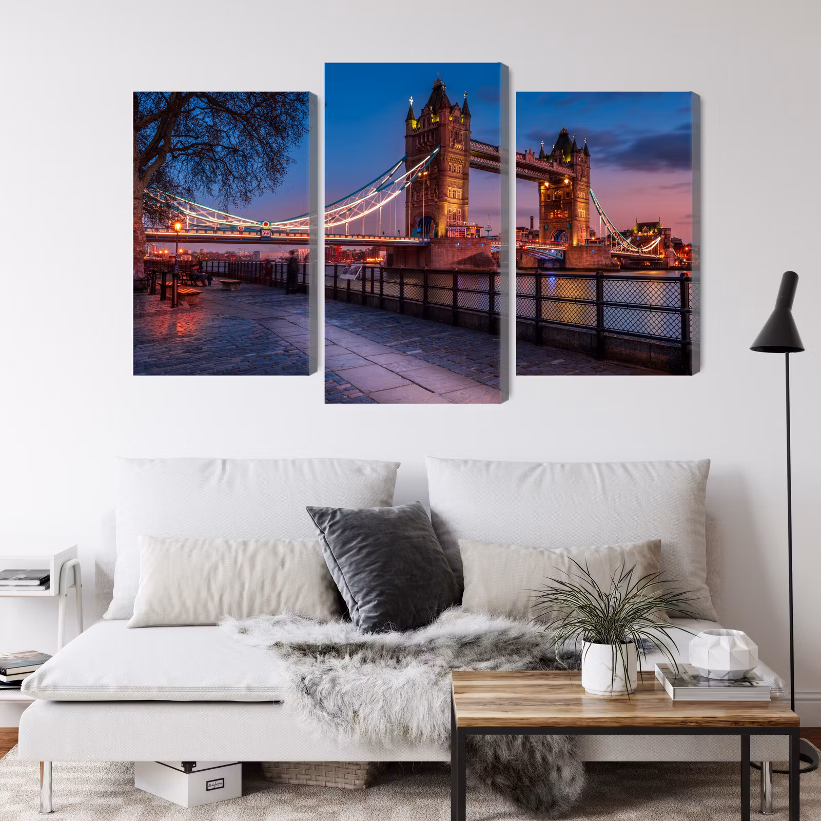 Motivet Tower bridge in london at sunset förenar estetik och teknik i en harmonisk komposition, där färgtonerna är noggrant balanserade för att framhäva djup, kontrast och rytm utan att kännas skarpa. Canvasen är monterad på en stabil fururam för ett professionellt uttryck som håller över tid. Resultatet är en canvastavla som förmedlar lugn och riktning – oavsett om den hänger i vardagsrum, sovrum eller kontor. Ljuset i motivet skapar mjuka övergångar och ger en känsla av stillhet i rummet.