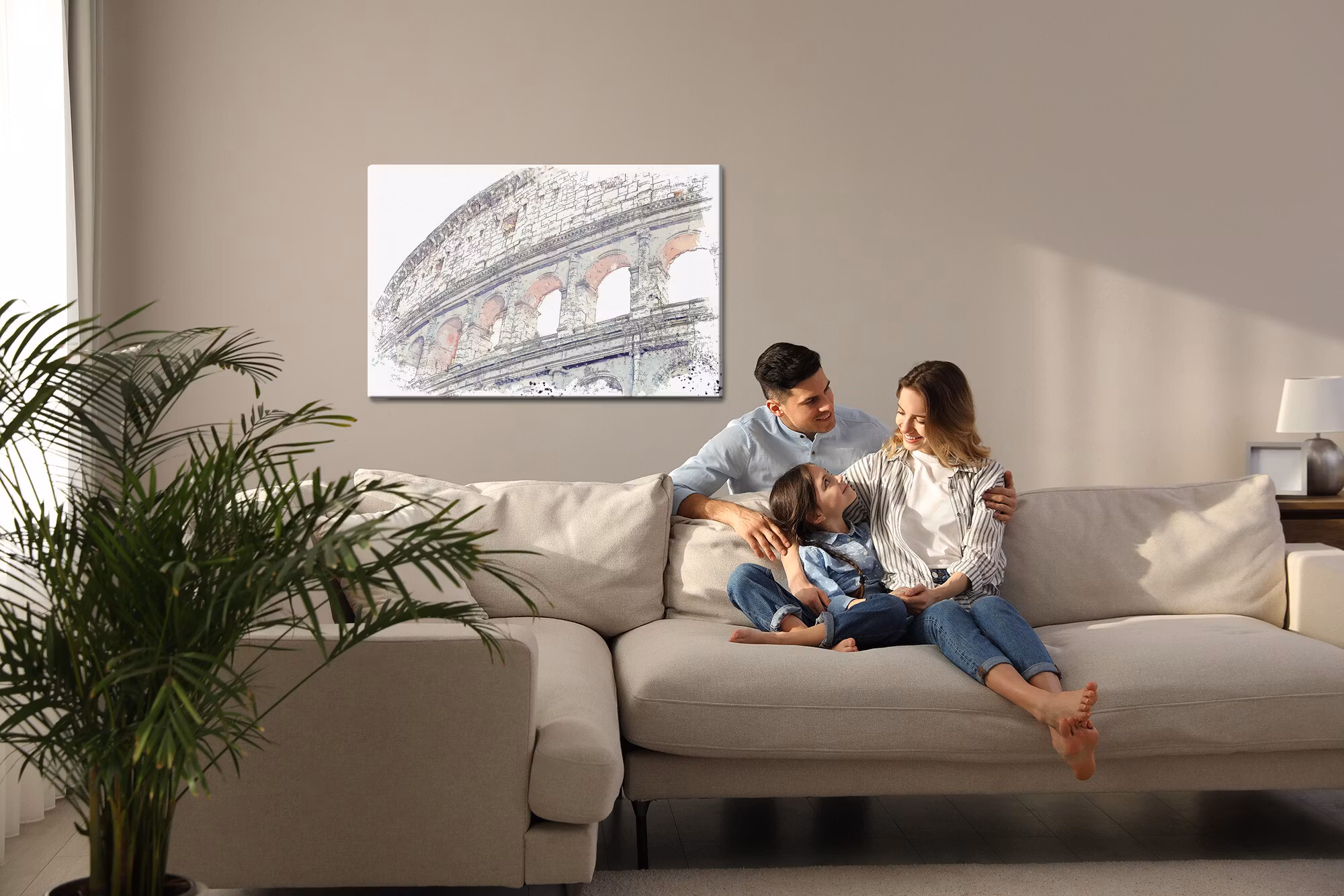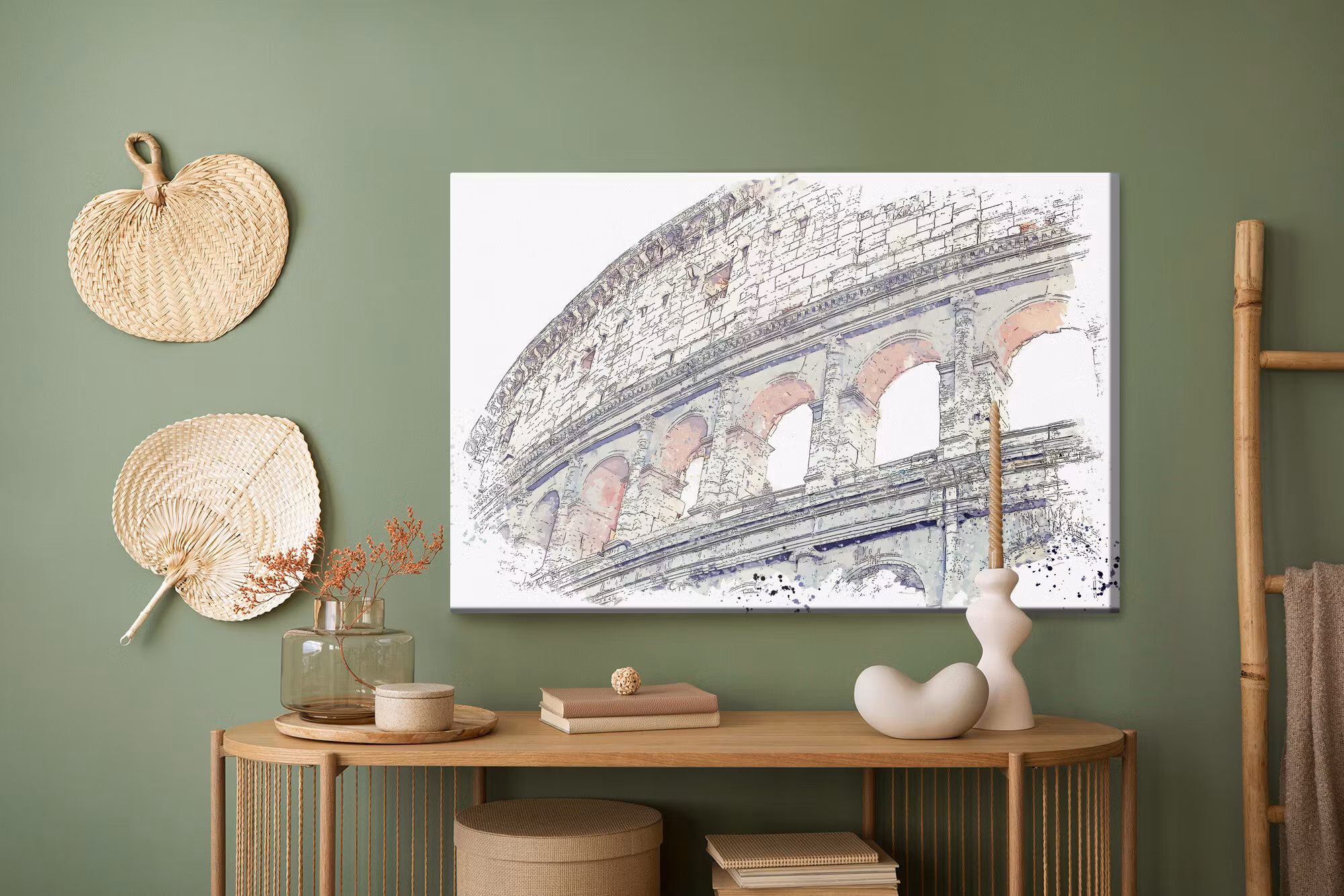Motivet Roman colosseum as painted förenar estetik och teknik i en harmonisk komposition, där färgtonerna är noggrant balanserade för att framhäva djup, kontrast och rytm utan att kännas skarpa. Canvasen är monterad på en stabil fururam för ett professionellt uttryck som håller över tid. Resultatet är en canvastavla som förmedlar lugn och riktning – oavsett om den hänger i vardagsrum, sovrum eller kontor. Ljuset i motivet skapar mjuka övergångar och ger en känsla av stillhet i rummet.