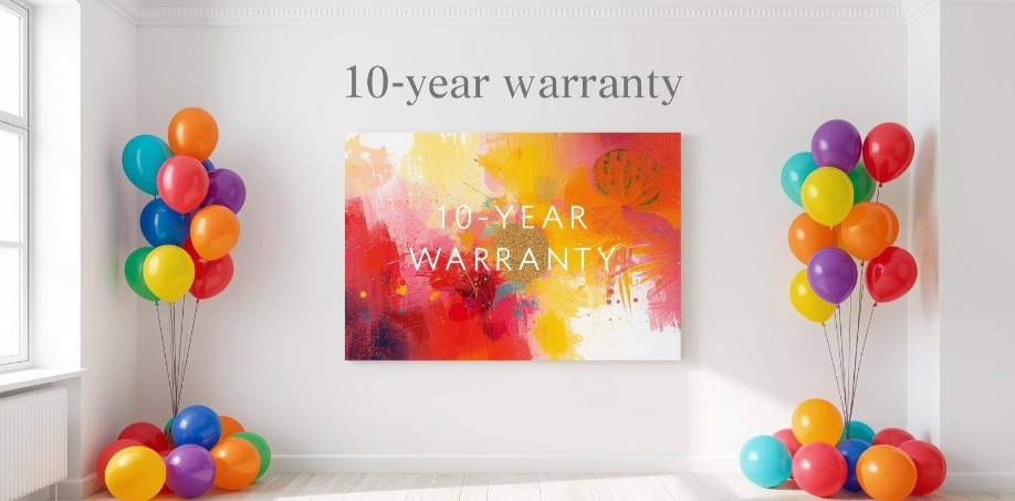 Vi garanterar att den produkt du beställer är felfri vid leverans och behåller sin kvalitet under många år framöver. Garantin gäller i 10 år från inköpsdatum och omfattar färgbeständighet, materialkvalitet och hållbar konstruktion vid normal användning. Alla våra tavlor tillverkas i samarbete med ledande tryckerier och ramverkstäder i Sverige och Europa. Vi använder HP Latex-teknik – en avancerad, miljövänlig tryckmetod med vattenbaserade, luktfria och GREENGUARD Gold-certifierade bläck. Den tekniken säkerställer intensiva färger, skarpa detaljer och lång livslängd.